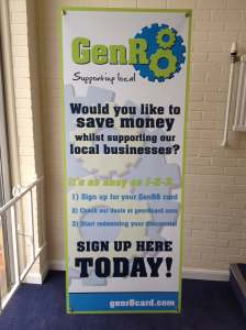 Outdoor Tension Banner – Outdoor tension display stand supplied for a local business enterprise loyalty card company operating in Ely, Ipswich, and Newmarket