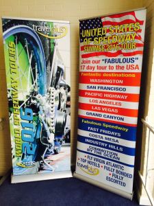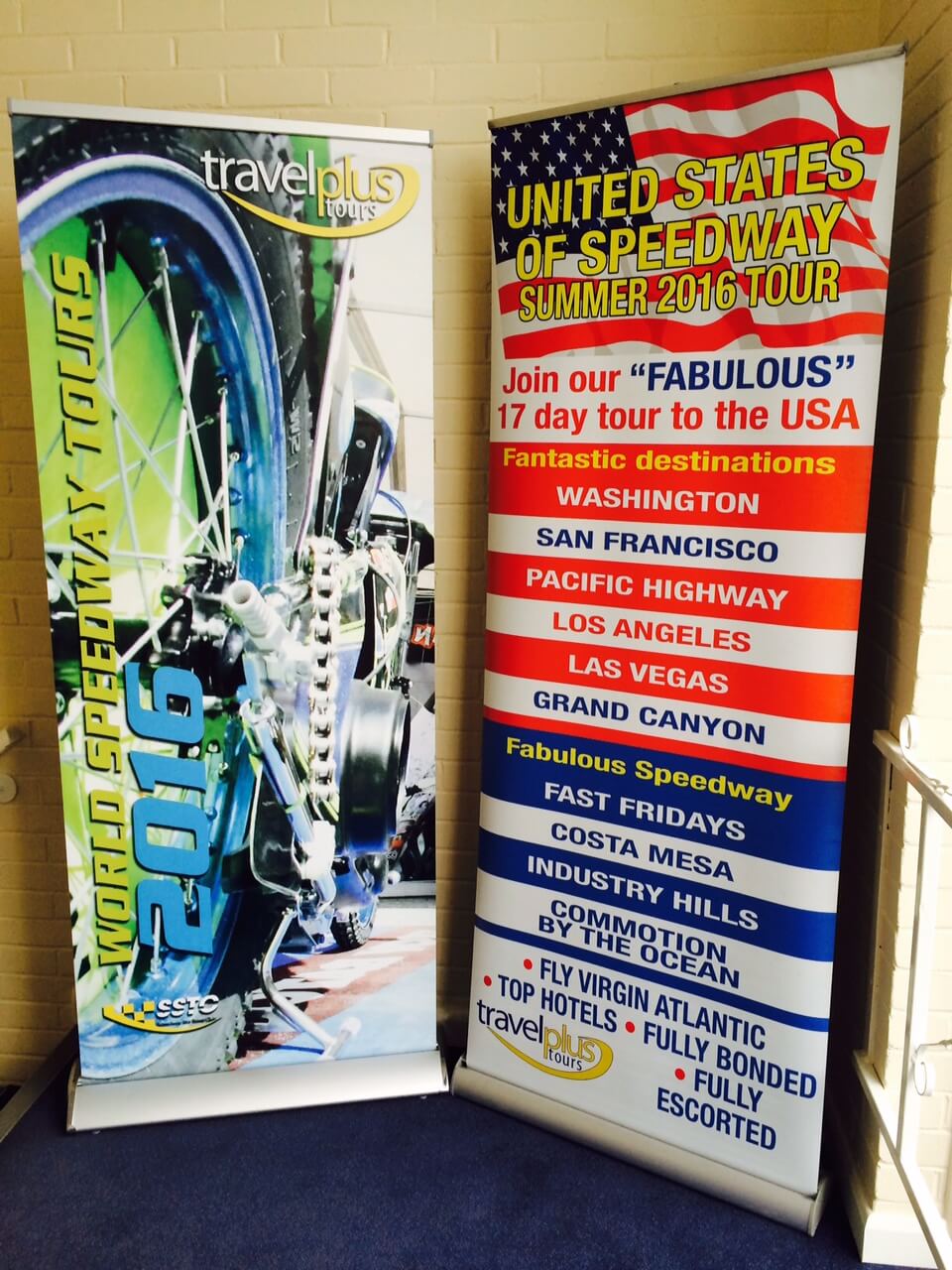 Two Pop-Up Banners – Part of a range of Pop-Up Roller Banners supplied to a Sports Travel Company near Felixstowe