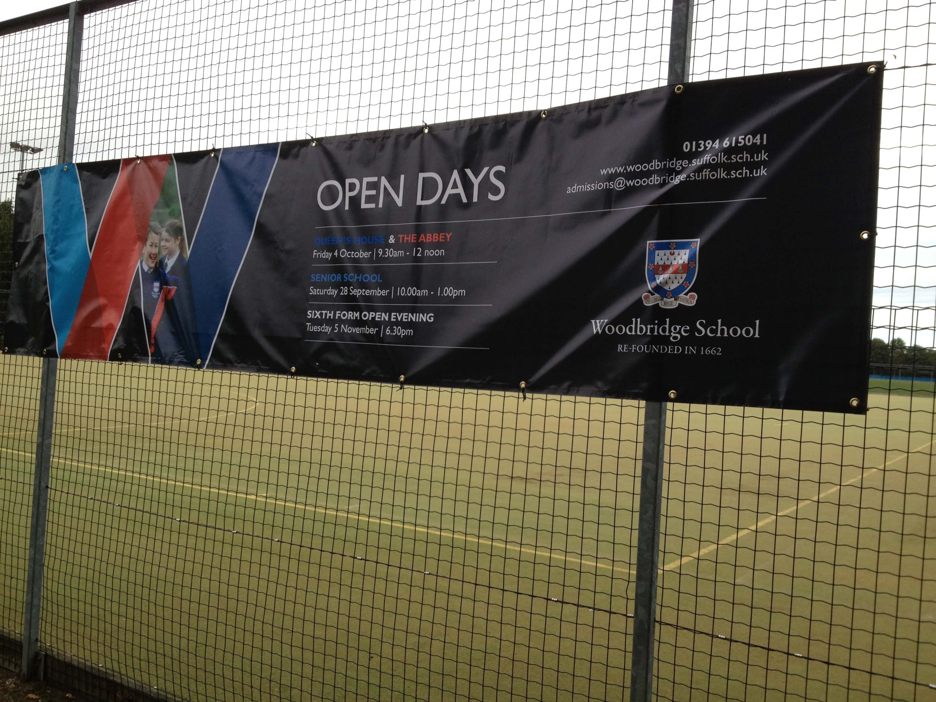 Outdoor Vinyl Banner – One of a range of open day events banners supplied for a woodbridge area school