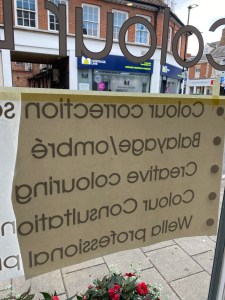 Vinyl Graphics being installed to a Hairdressers window in Ipswich Town Centre