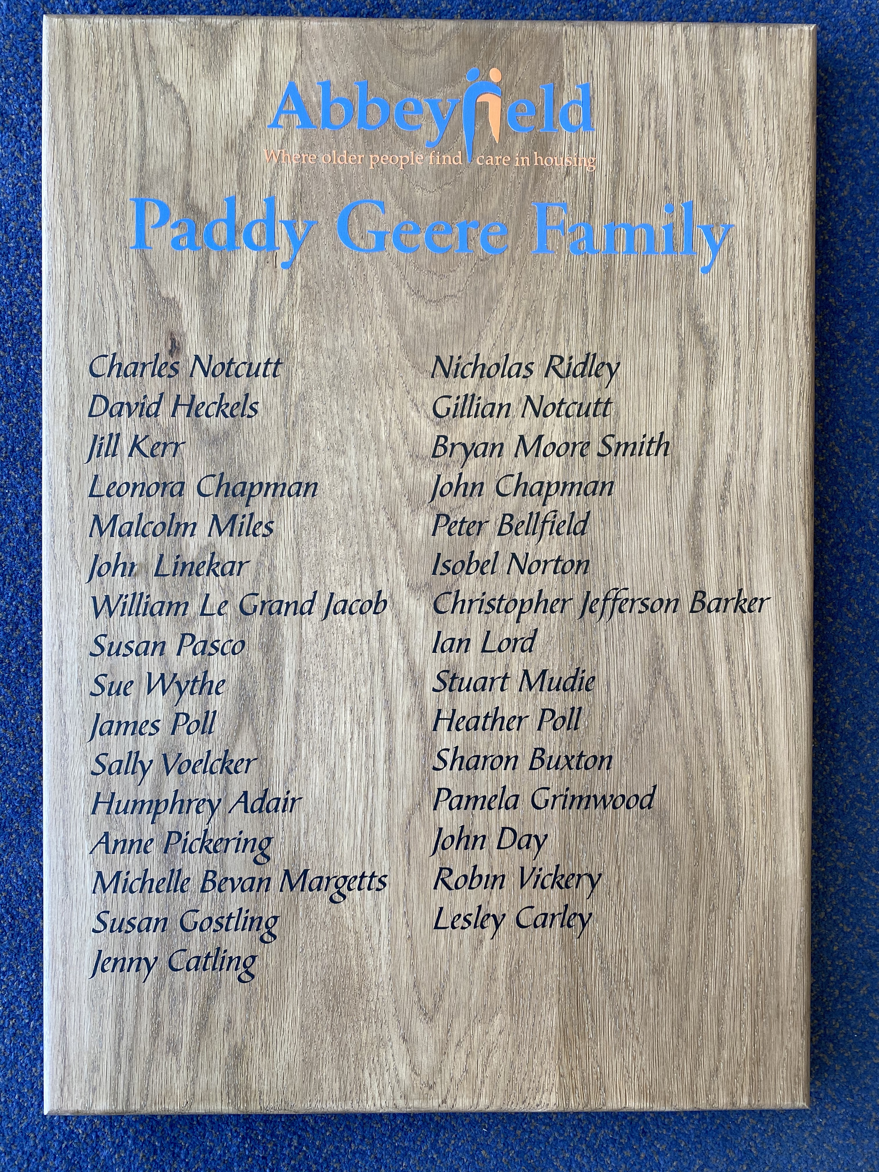 Printed Honours Board – Supplied to a Care Home in Suffolk