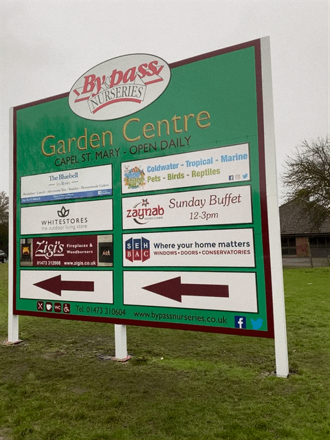 Large Garden Centre Advertising Signage – For a Garden Centre near the Suffolk/Essex border