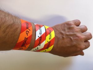 An easy way to keep track of who is allowed into what event areas are these tearproof concert and event wristbans. We canpersonalise these in any design or colour along with having them all sequentially numbered.